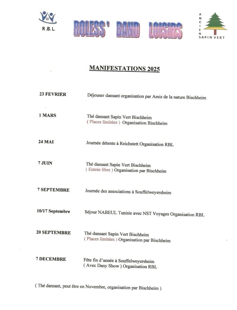 RBL, acronyme de Roless’Band Loisirs, est une association créée en 2018 dans le but de proposer à ses adhérents des moments de partage et de convivialité, en organisant des dîners dansants, des sorties culturelles ou de découvertes, des voyages, des journées ou soirées récréatives et d’autres événements.